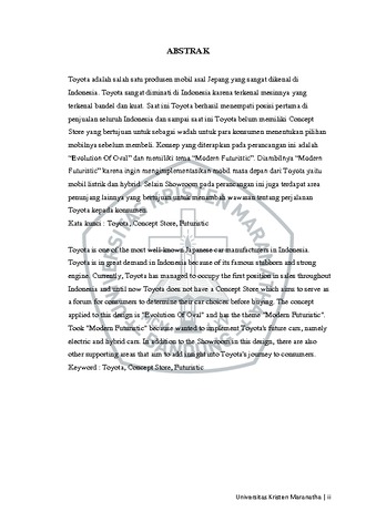 Pratama, Adrian Kurnia (1763015) (2021) Perancangan Toyota Concept Store. Undergraduate thesis, Universitas Kristen Maranatha.