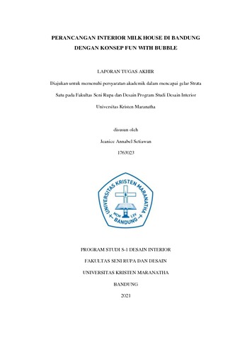 Setiawan, Jeanice Annabel (1763023) (2021) Perancangan Interior Milk House di Bandung dengan Konsep Fun with Bubble. Undergraduate thesis, Universitas Kristen Maranatha.