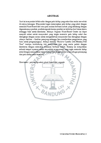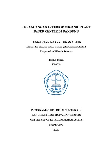 Benita, Jesslyn (1763028) (2021) Perancangan Interior Organic Plant Based Center di Bandung. Undergraduate thesis, Universitas Kristen Maranatha.