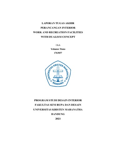 Tiono, Yohanes (1763057) (2021) Perancangan Interior Work and Recreation Facilities with Dualism Concept. Undergraduate thesis, Universitas Kristen Maranatha.