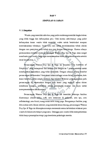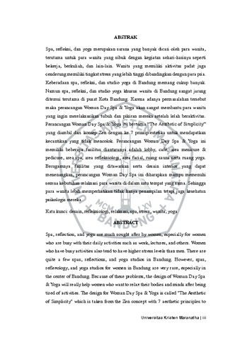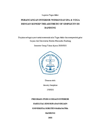 Josephine, Aracely (1763035) (2021) Perancangan Interior Woman Day Spa & Yoga dengan Konsep The Aesthetic of Simplicity di Bandung. Undergraduate thesis, Universitas Kristen Maranatha.