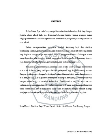 Kristami, Veronika Dheta (1763901) (2021) Perancangan Interior Baby House Spa and Care dengan Konsep “Spirit of The Stork". Undergraduate thesis, Universitas Kristen Maranatha.