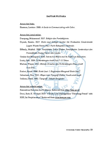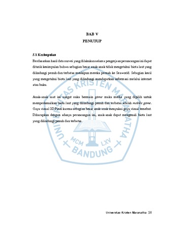 Gunawan, Alice Kurnia (1564020) (2021) Perancangan Game untuk Anak-Anak mengenai Pengenalan Biota Laut yang Dilindungi Penuh dan Terbatas. Undergraduate thesis, Universitas Kristen Maranatha.